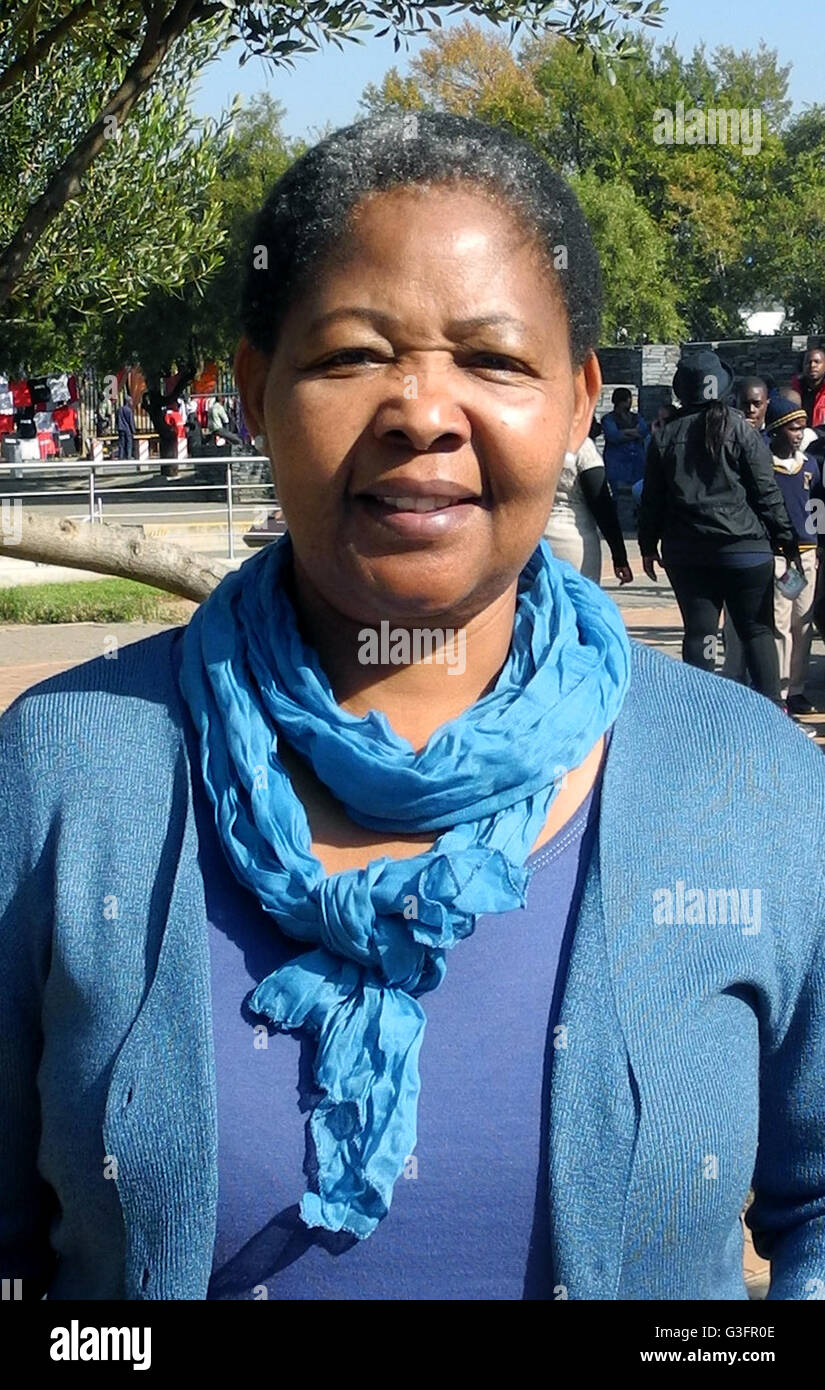 Antoinette Sithole Sorella Di Hector Pieterson Stando In Piedi Sui Motivi Di Hector Pieterson Museum Di Soweto A Johannesburg Sud Africa 24 Maggio 2016 Il 16 Giugno 1976 12 Anno Vecchio Hector E Stato