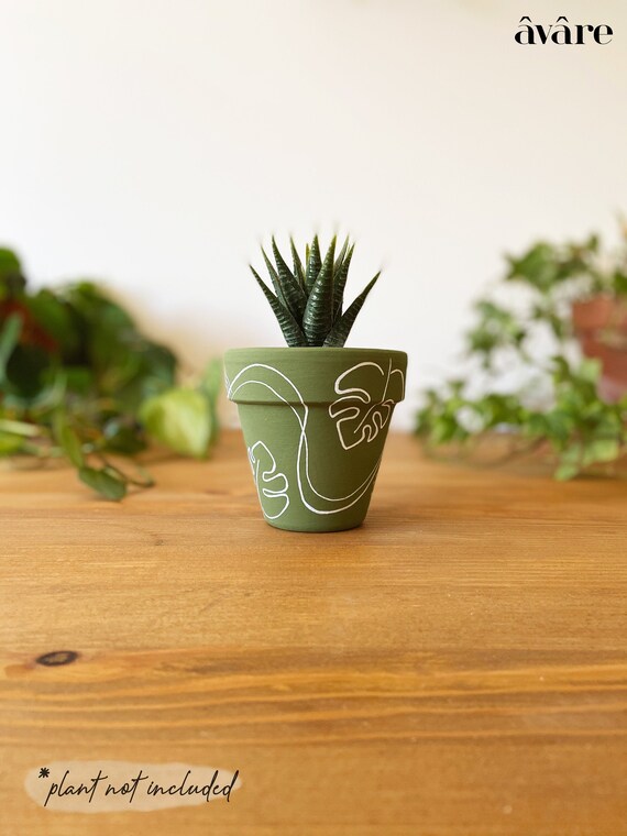 Hand Painted Planter Monstera Leaf Terracotta Pot Clay Etsy